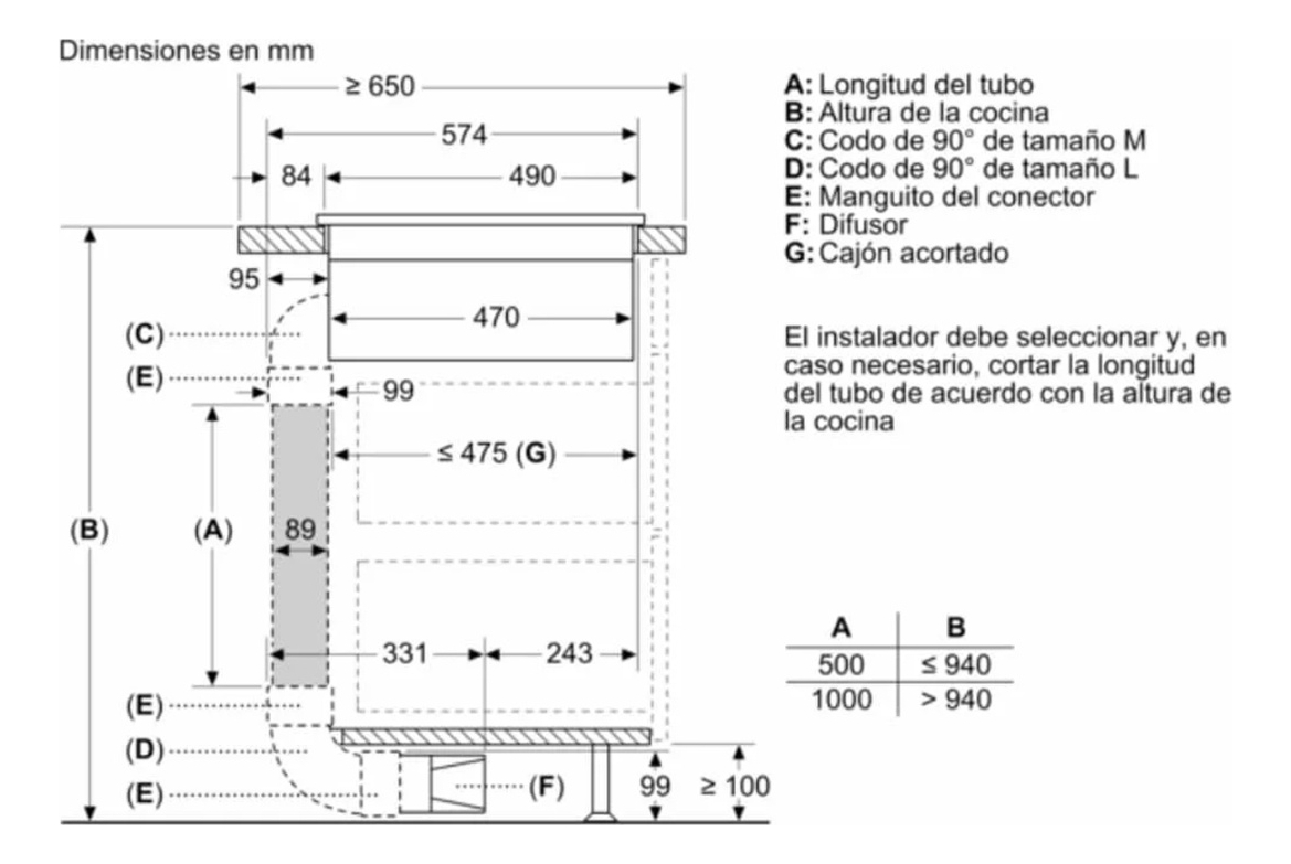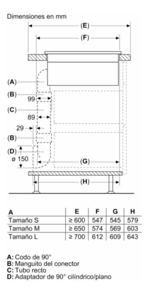 • Extractor integrado (máximo de extracción 622 m³/h)