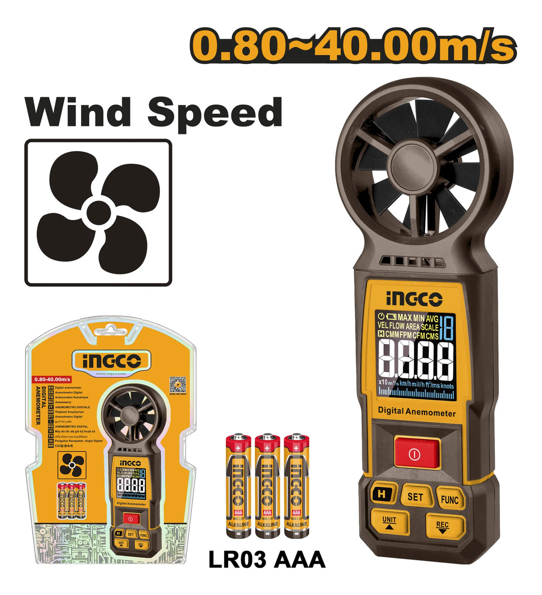 Anemometro Digital Medidor Velocidad Viento Ingco Hetan031Anemometro Digital Medidor Velocidad Viento Ingco Hetan031