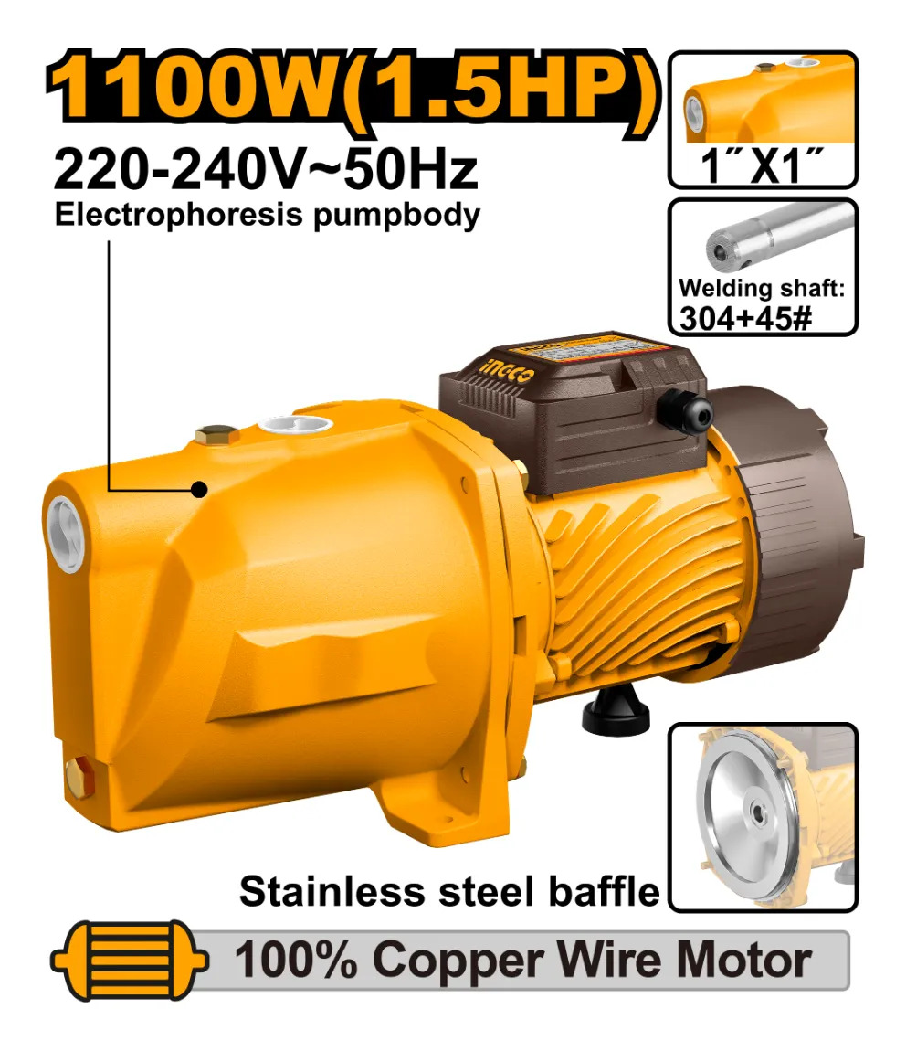 Bomba Jet Agua 1100w Autocebante 70l/min Ingco Jp110068