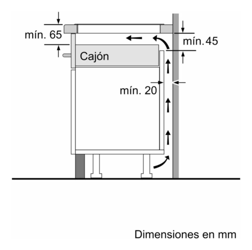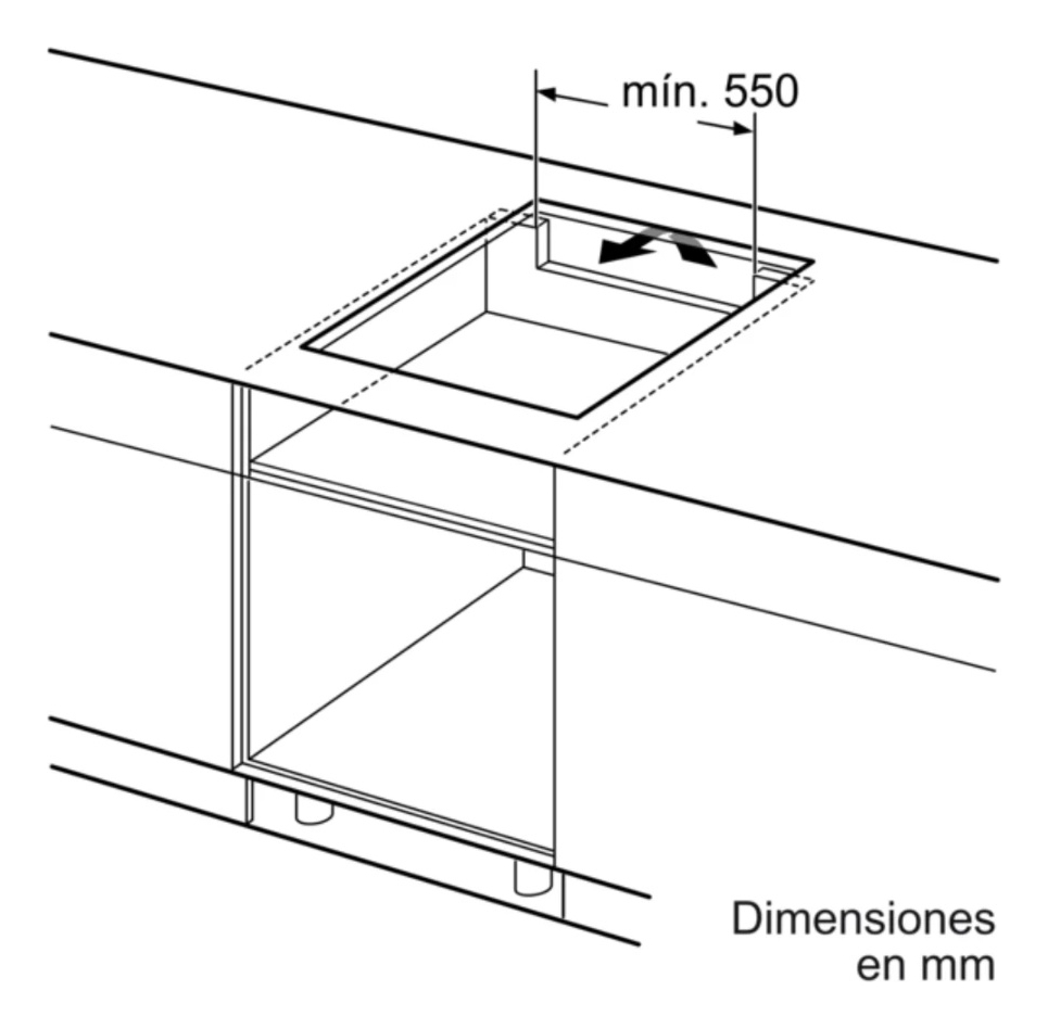 • Dimensiones de encastre (ancho x fondo x alto): 560 x 490 x 51mm