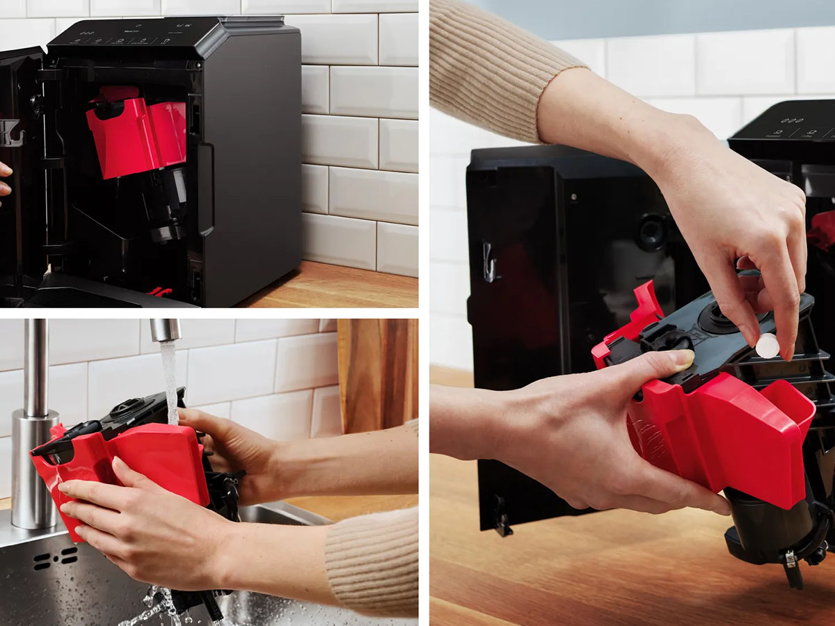 Bandeja de goteo con recipiente para posos de café.
