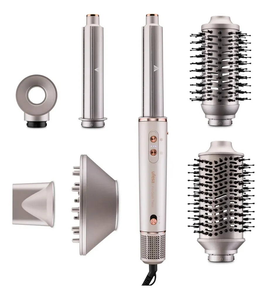 • Multifunción 7 en 1: Seca, alisa, voluminiza y riza con un solo dispositivo