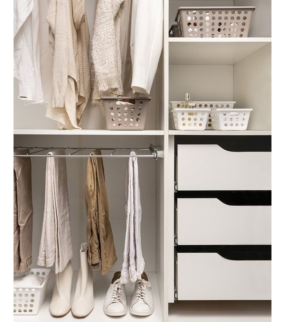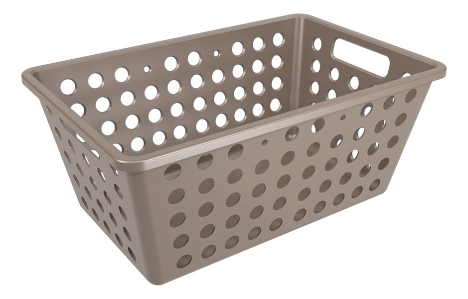 Fabricado en material plástico, este canasto cuenta con una forma rectangular que se adapta fácilmente a cualquier rincón. Su diseño en un elegante tono warm grey combina con diversos estilos decorativos, haciéndolo un complemento versátil y atractivo para tu hogar.