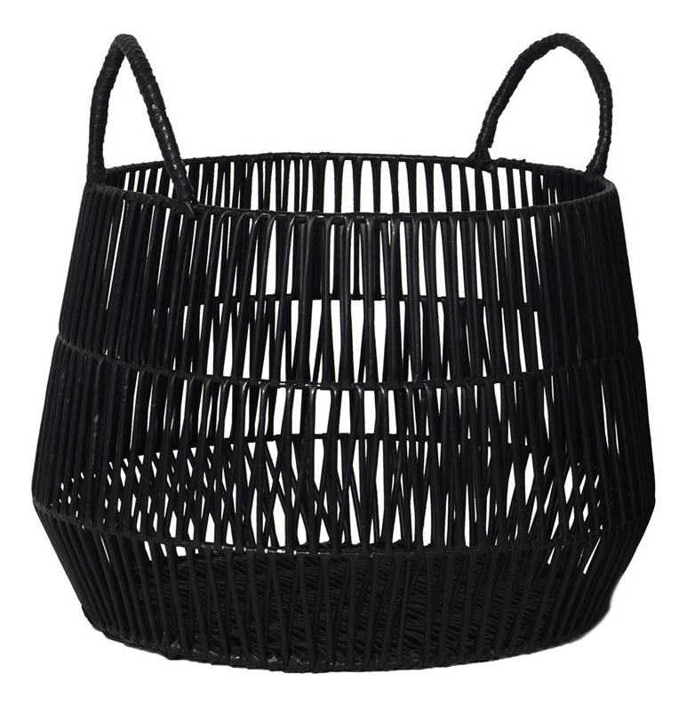 El cesto con asas D30X25cms de plástico simil ratán negro es la solución perfecta para quienes buscan organización con estilo. Con un diámetro de 30 cm y una profundidad de 25 cm, este cesto redondo es ideal para cualquier espacio, desde el hogar hasta la oficina. Su diseño elegante y moderno añade un toque decorativo, mientras que su material de plástico simil ratán asegura durabilidad y resistencia.
