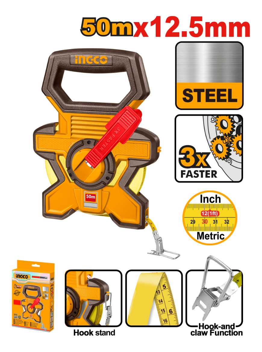 CINTA METRICA AGRIMENSOR 50M X 12.5MM INGCO