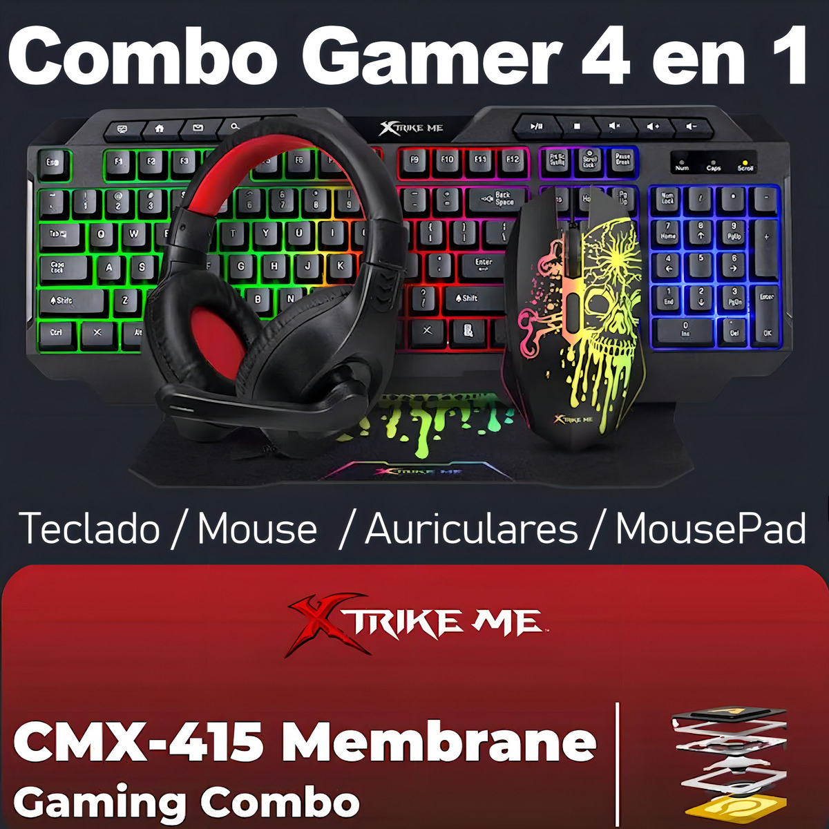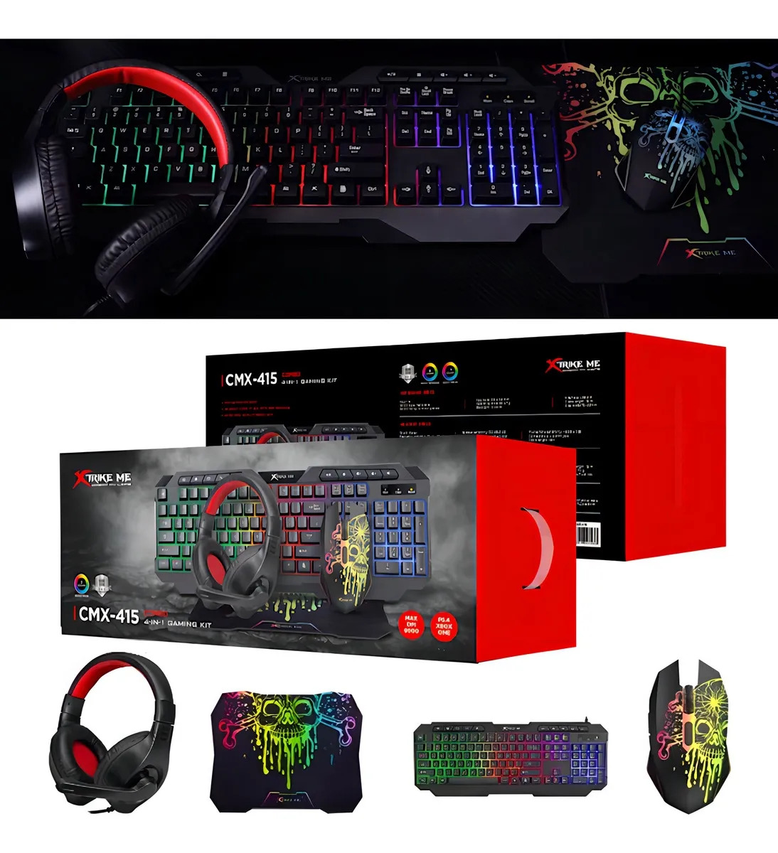 COMBO GAMER 4 EN 1 XTRIKE ME CMX-415 SP NEGRO RGB