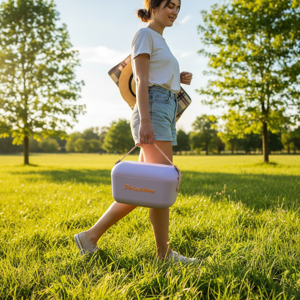 Polarbox no es una nevera cualquiera. Detrás de su estética delicada se esconde una capacidad térmica que sorprende. Gracias a su interior de poliestireno expandido de alta densidad, mantiene el frío durante horas y horas, incluso bajo el sol. Ideal para conservar bebidas heladas, comidas caseras o cualquier plan que merezca durar. Su asa de ajustable se adapta a ti, y su diseño icónico, atemporal, inconfundible, convierte cada salida en una experiencia.