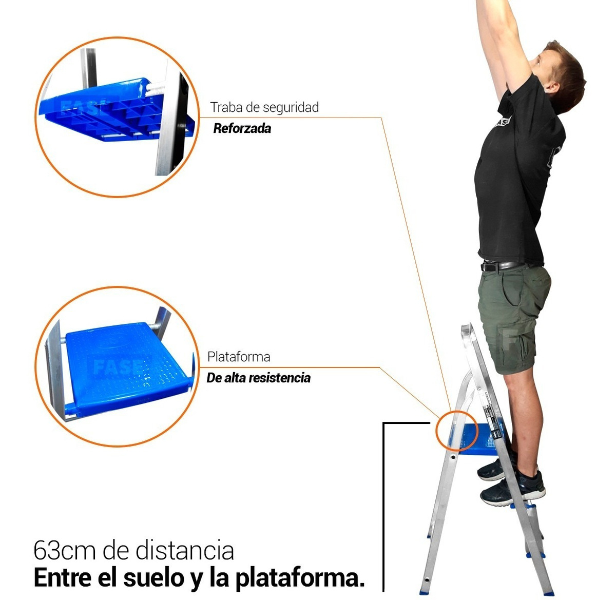 Versátil y portátil, su diseño permite el ascenso y descenso manteniendo la estabilidad requerida para trabajar con seguridad. Al finalizar, tan solo deberás plegarla y ocupará muy poco espacio.