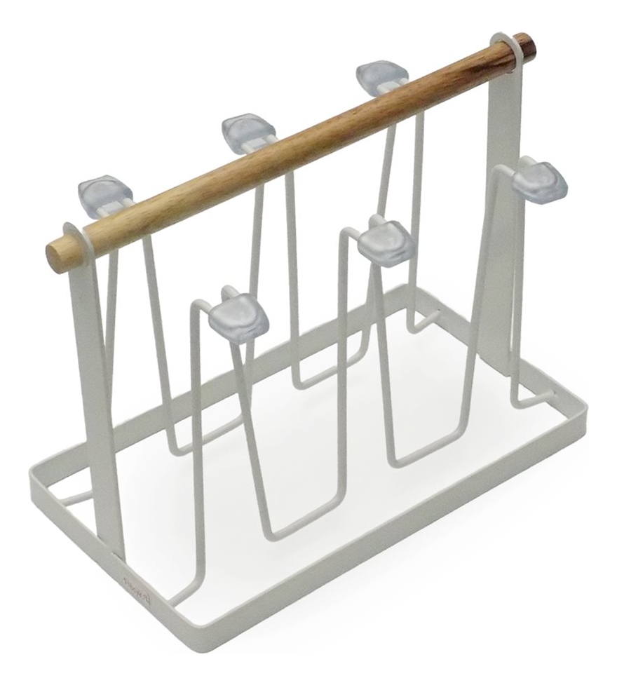 ESCURRE VASOS METAL MGO MADERA BLANCO. 26x13x19CM
