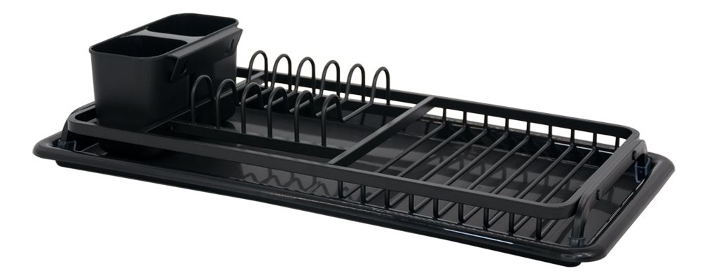 Escurridor 23x48cms Aluminio Con Bandeja Y Cubiertero NegroEscurridor 23x48cms Aluminio Con Bandeja Y Cubiertero Negro