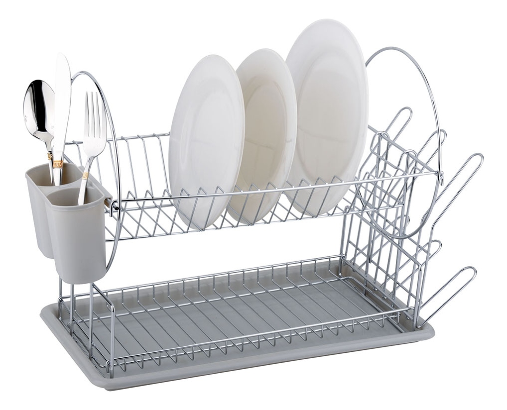 ESCURRIDOR A.CROM C/BANDEJA Y CUB GRIS. 38X23.5X32CM