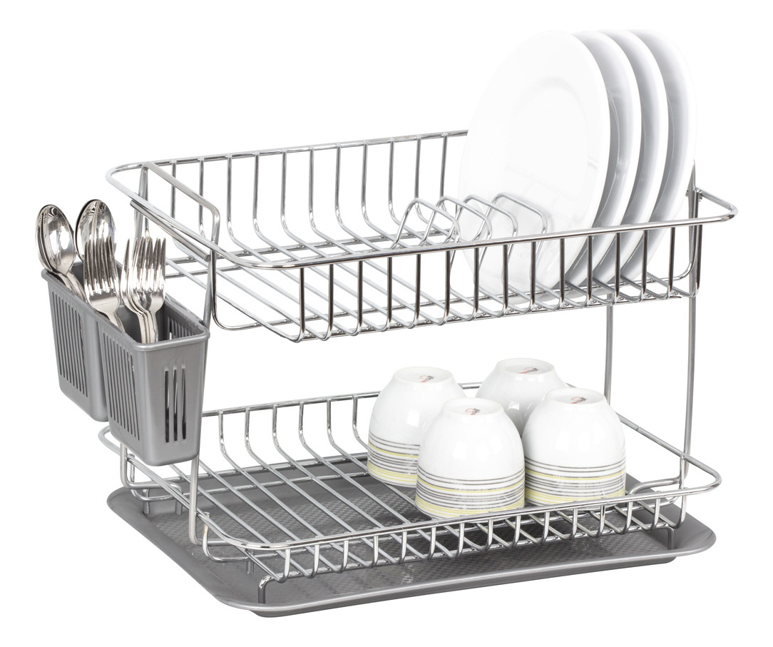 ESCURRIDOR DOBLE C/BANDEJA 36.5x27x27CM CROMADO