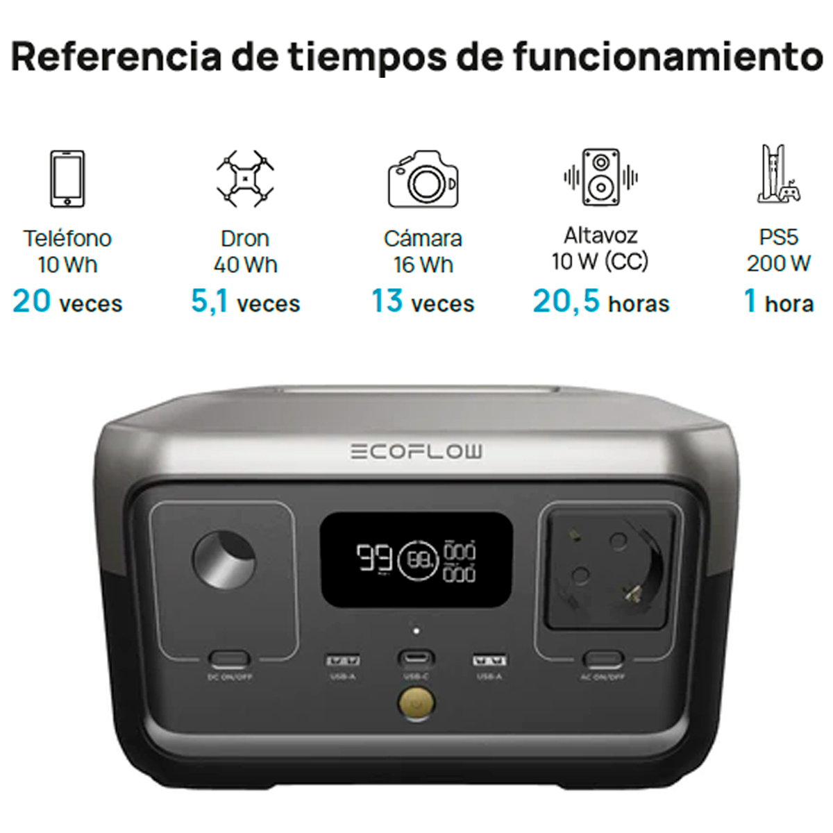 AC Salida 2 enchufes, 300W total (Pico 600W), X-Boost 600W