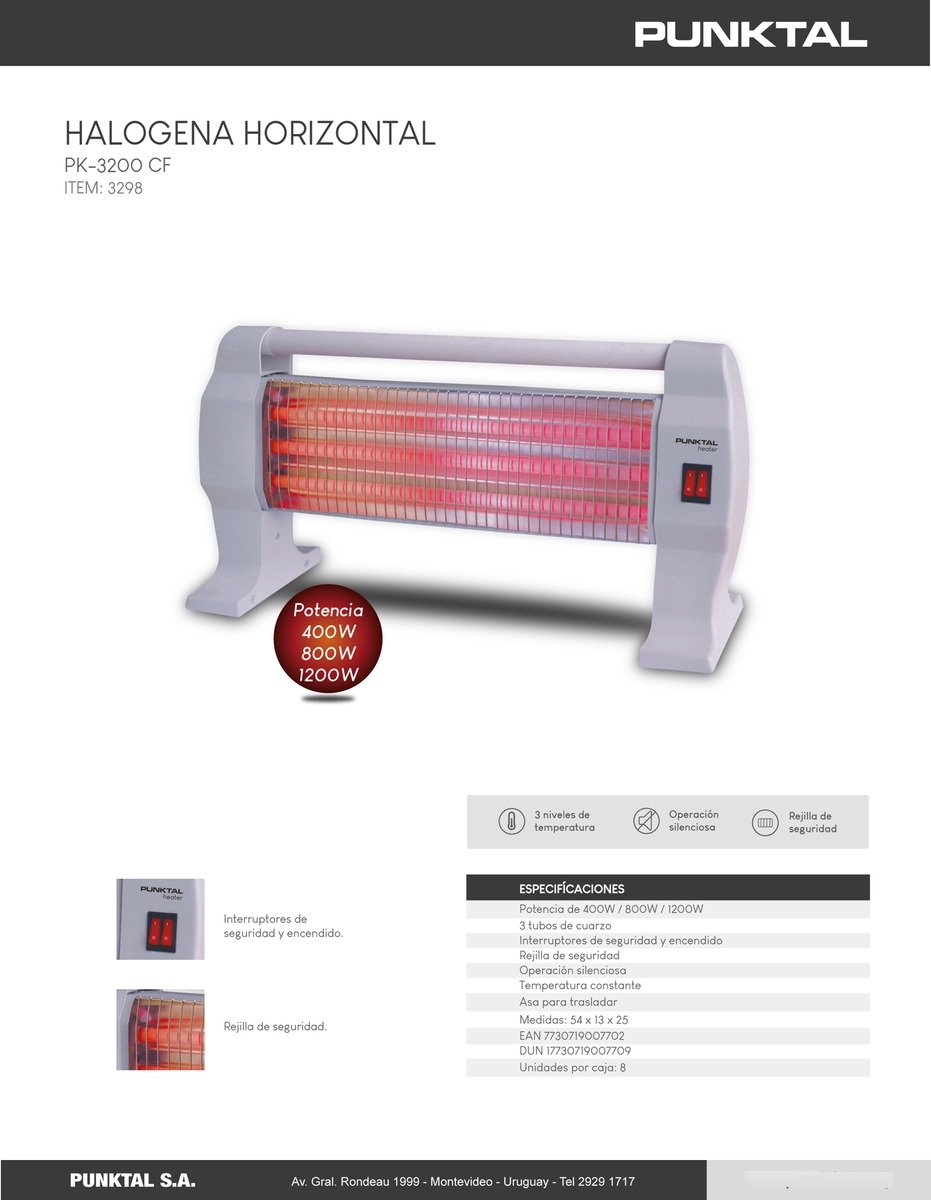 ESTUFA HALOGENA 3 TUBOS CUARZOS PUNKTAL 1200W