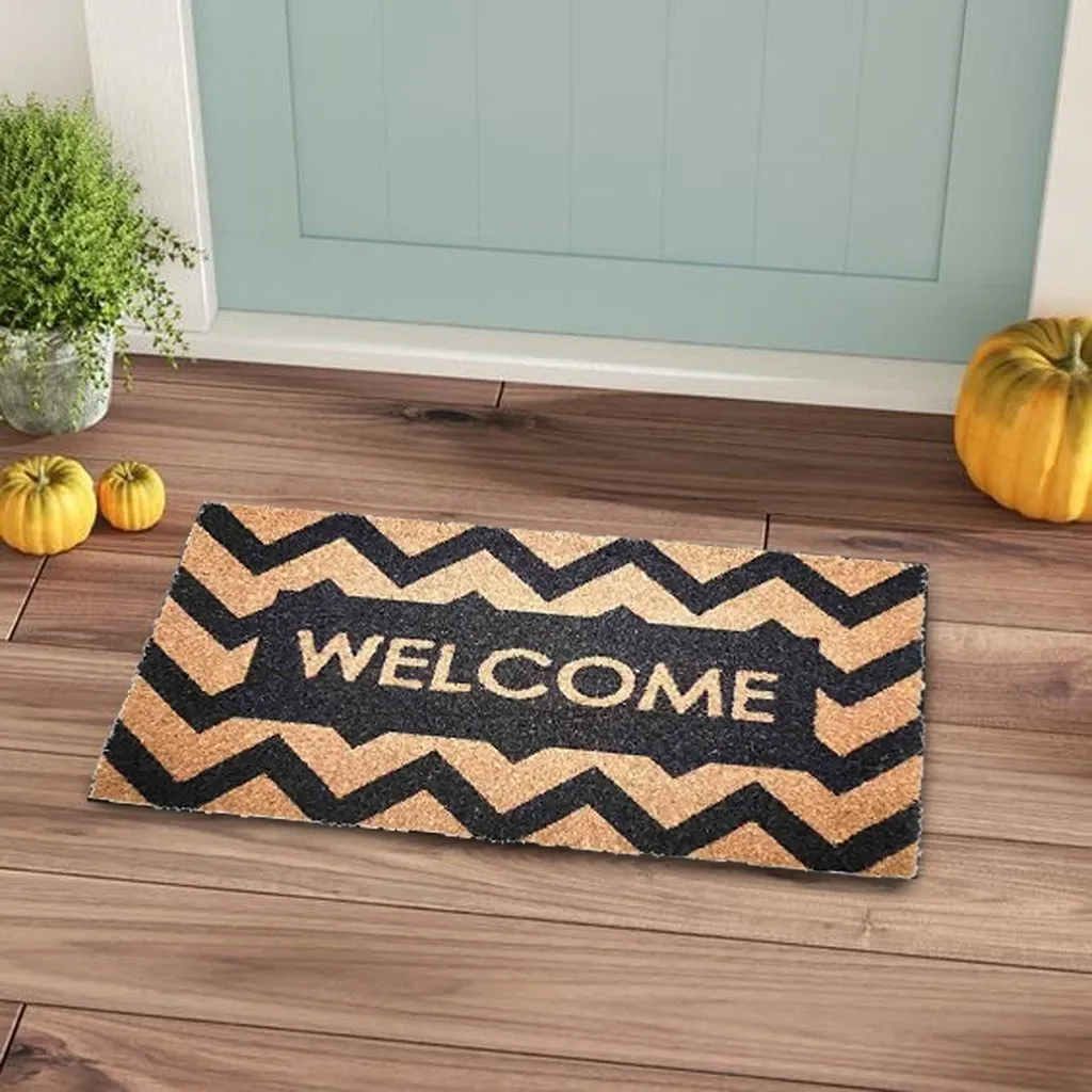 Este felpudo no solo es atractivo, sino que también es funcional, gracias a su base antideslizante que asegura su lugar incluso en las entradas más transitadas. Hecho con materiales de fibra de coco, es resistente y duradero, ideal para soportar la suciedad y la humedad de los zapatos al entrar a casa.