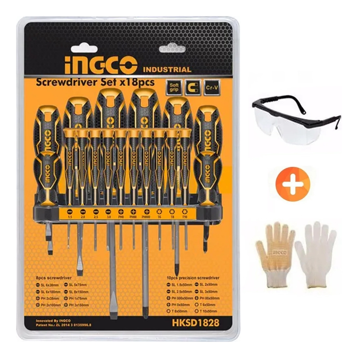 Ff Juego 18 Destornilladores Ingco Hksd1828 Industrial Torx