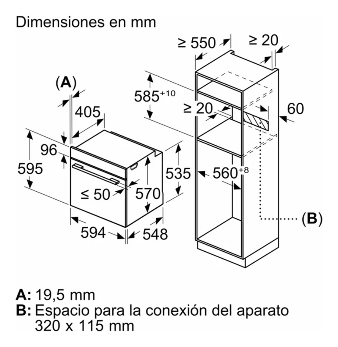• Dimensiones del aparato (alto x ancho x fondo (mm): 595 x 594 x 548