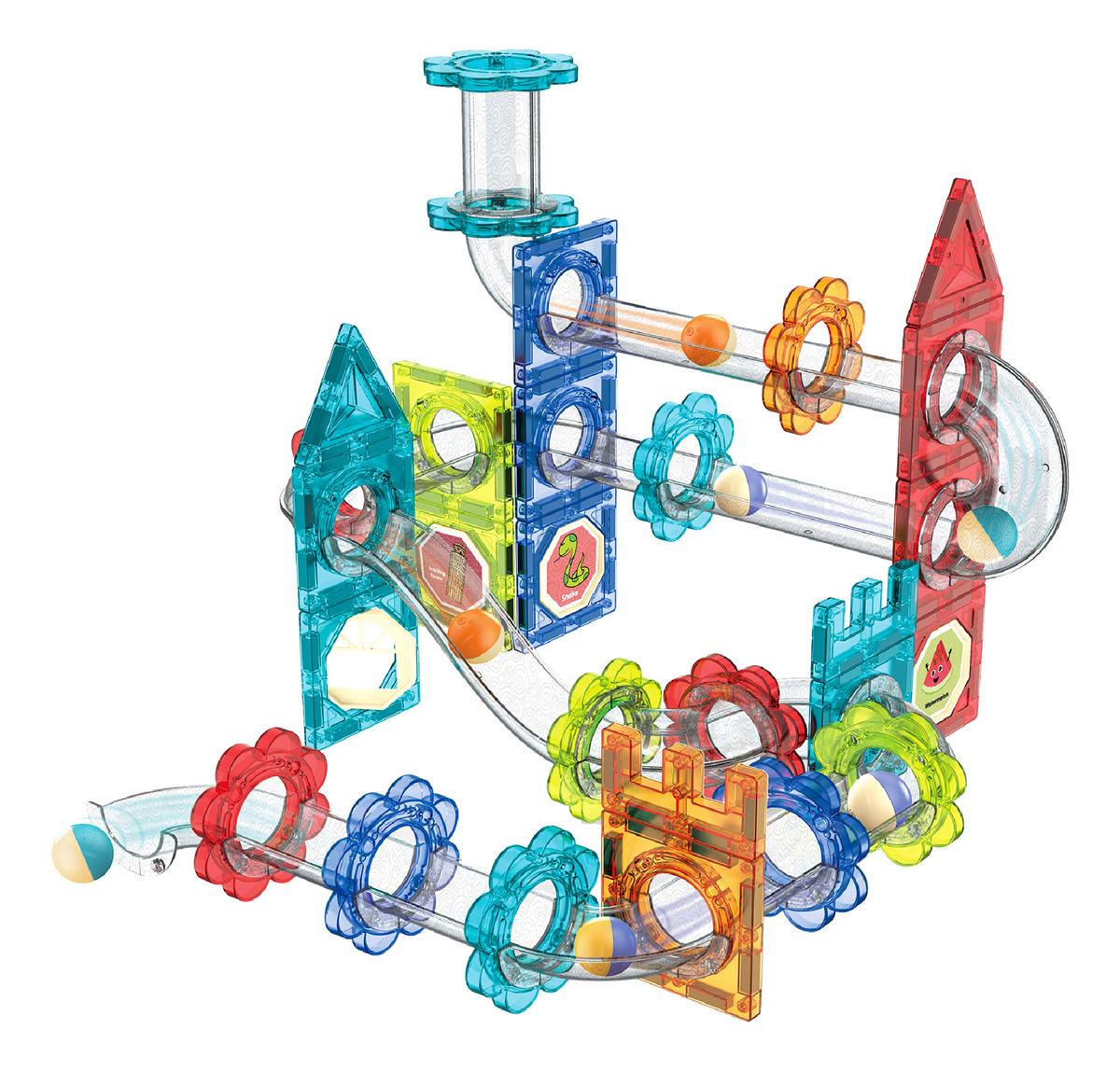 Gracias a los imanes fuertes en cada pieza, las conexiones son sólidas y seguras, lo que garantiza que tus pistas de mármol se mantengan resistentes y estables mientras juegas.