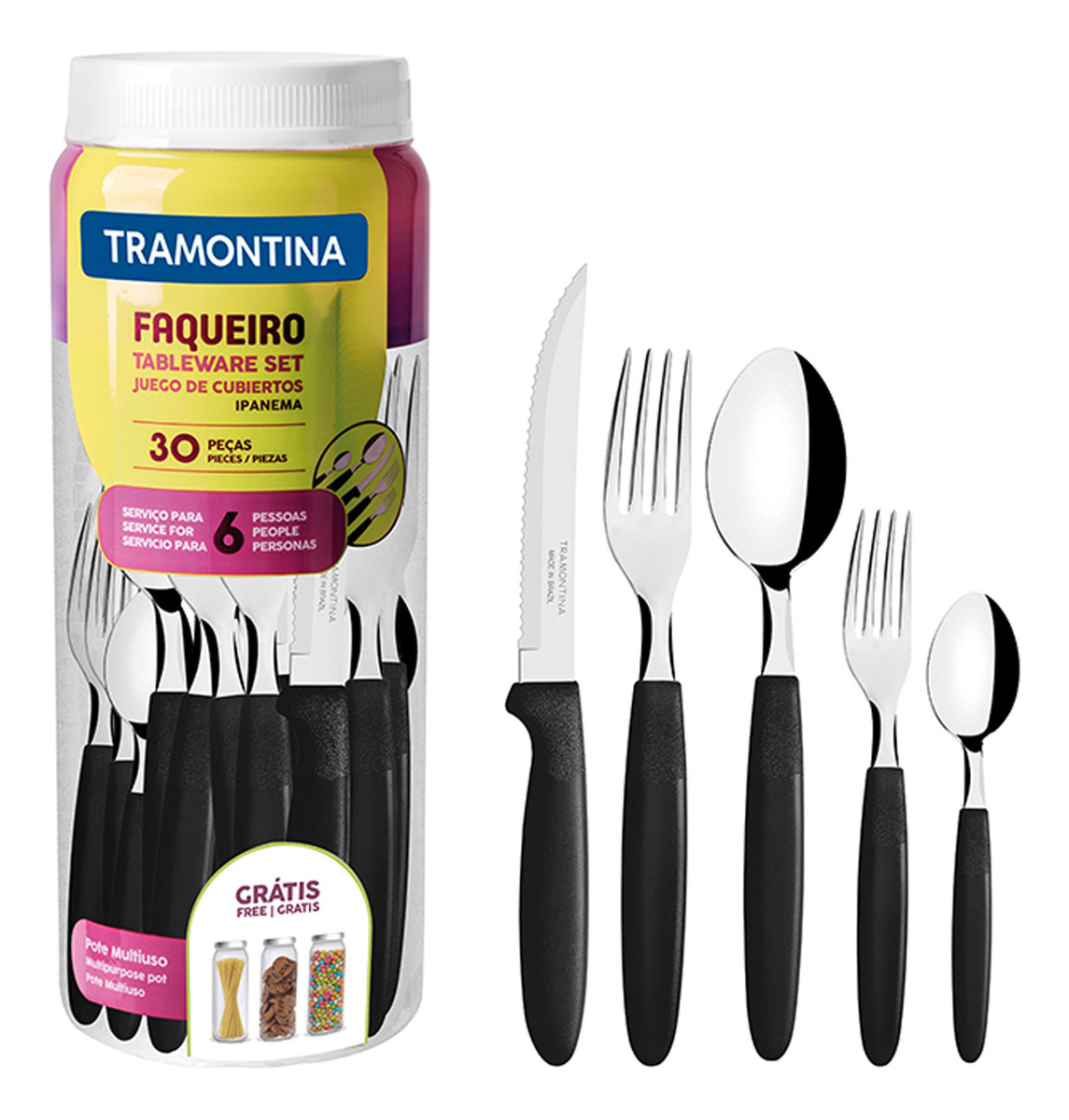 Juego Cubiertos Tramontina Negro En Pote LĂnea Ipanema 30 Pz cantidad