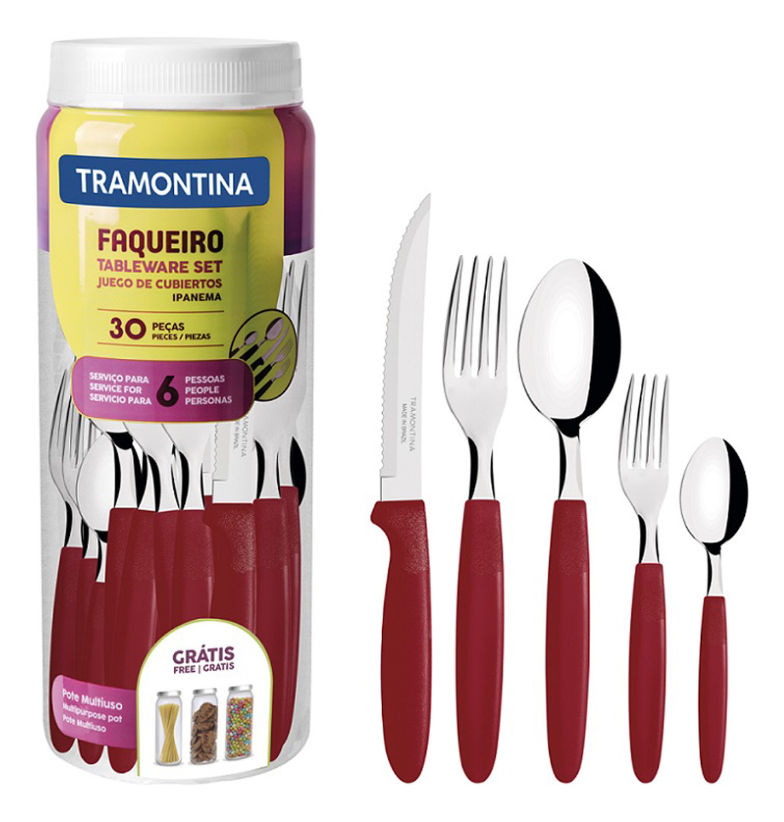 JUEGO DE CUBIERTOS CON MANGO ROJO TRAMONTINA IPANEMA 30 PZAS