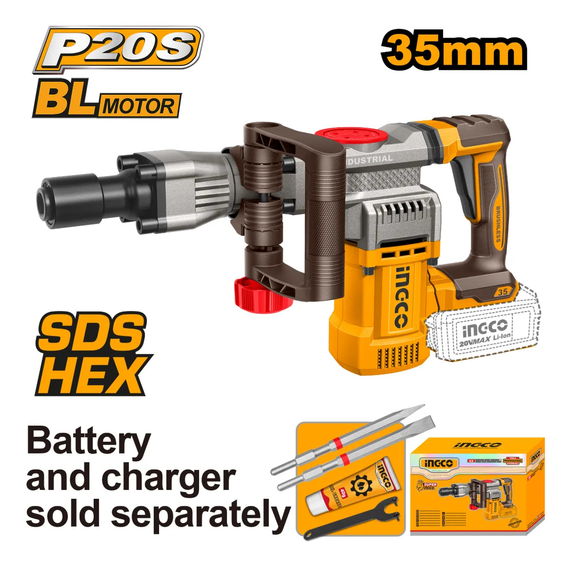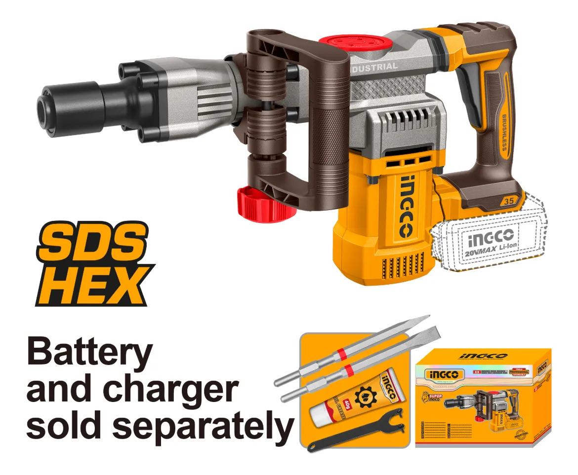 Martillo Demoledor 20v 16j Accesorios Sin Bat Ingco