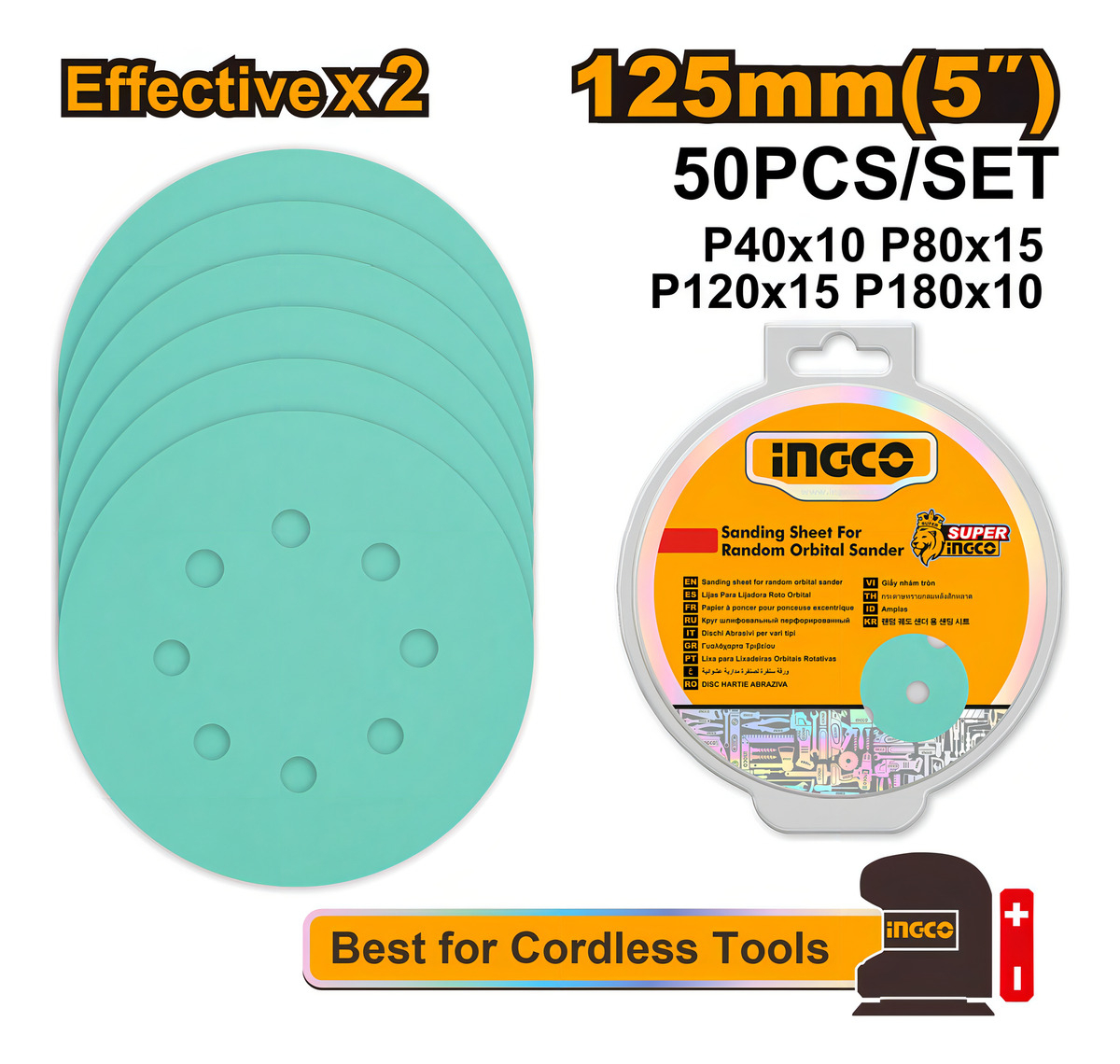 Pack Lijas Rotorbital Velcro 125mm Grano 40-80-120-180 Ingco Cantidad De Granos 4080120180USD 16,00