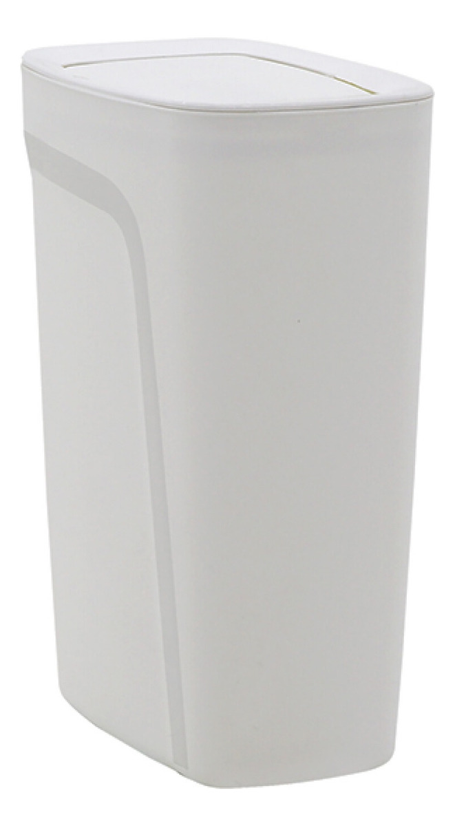 Fabricada en polipropileno inyectado. Cuenta con una capacidad de 10,5 litros. La tapa es abatible. Tiene un borde interno, lo que facilita la colocación y la extracción de la bolsa de residuos (se recomienda usar bolsas con capacidad de 15 litros). Dimensiones: Altura 35.5 x Ancho 16.5 x Largo 25cm. –