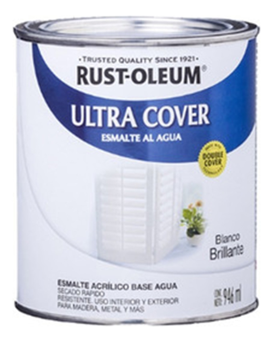 RUST-OLEUM ULTRA COVER ES UN ESMALTE BASE AGUA MULTIPROPÓSITO, ULTRA CUBRITIVO Y DE SECADO RÁPIDO QUE OTORGA UN ACABADO DURADERO, RESISTENTE AL DESCASCARADO Y AL DESGASTE EN PROYECTOS DE INTERIOR O DE EXTERIOR. SU FÓRMULA DE ALTA CALIDAD SE APLICA CON BROCHA O PINCEL MÁS FÁCILMENTE Y OCULTA MEJOR LAS IMPERFECCIONES QUE OTROS PRODUCTOS MULTIPROPÓSITO. COMPLETA EL PROYECTO EN MENOS TIEMPO Y CON MENOR CANTIDAD DE CAPAS, POR LO QUE ES LA OPCIÓN IDEAL TANTO PARA EXPERTOS COMO PARA PROYECTOS DE TIPO HAGALO USTED MISMO. BASE AGUA: PRÁCTICAMENTE NO TIENE OLOR Y LOS ELEMENTOS UTILIZADOS PARA PINTAR SE LAVAN CON AGUA Y JABÓN SECA AL TACTO EN SÓLO 30 MINUTOS. QUEDA TOTALMENTE SECO EN 2 A 4 HORAS. ULTRA CUBRITIVO Y RESISTENTE. IDEAL PARA INTERIOR O EXTERIOR. PARA APLICARSE SOBREMADERA, METAL, YESO Y MÁS! PARA OBTENER UN MEJOR RESULTADO AL APLICAR SOBRE MADERA VIRGEN O METAL, UTILICE PREVIAMENTE UN IMPRIMANTE. –