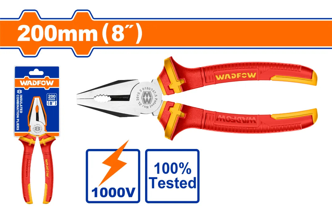 ALICATE UNIVERSAL AISLADO 8″ 1000V MANGO ERGONOMICO WADFOW WPL1938