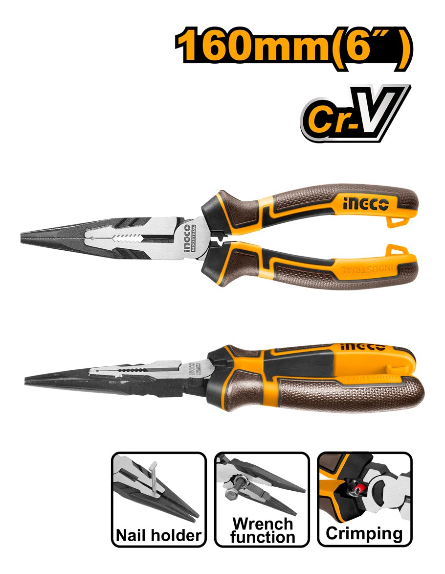 Pinza Punta Larga Ingco 160mm Con Corte Cromo Vanadio