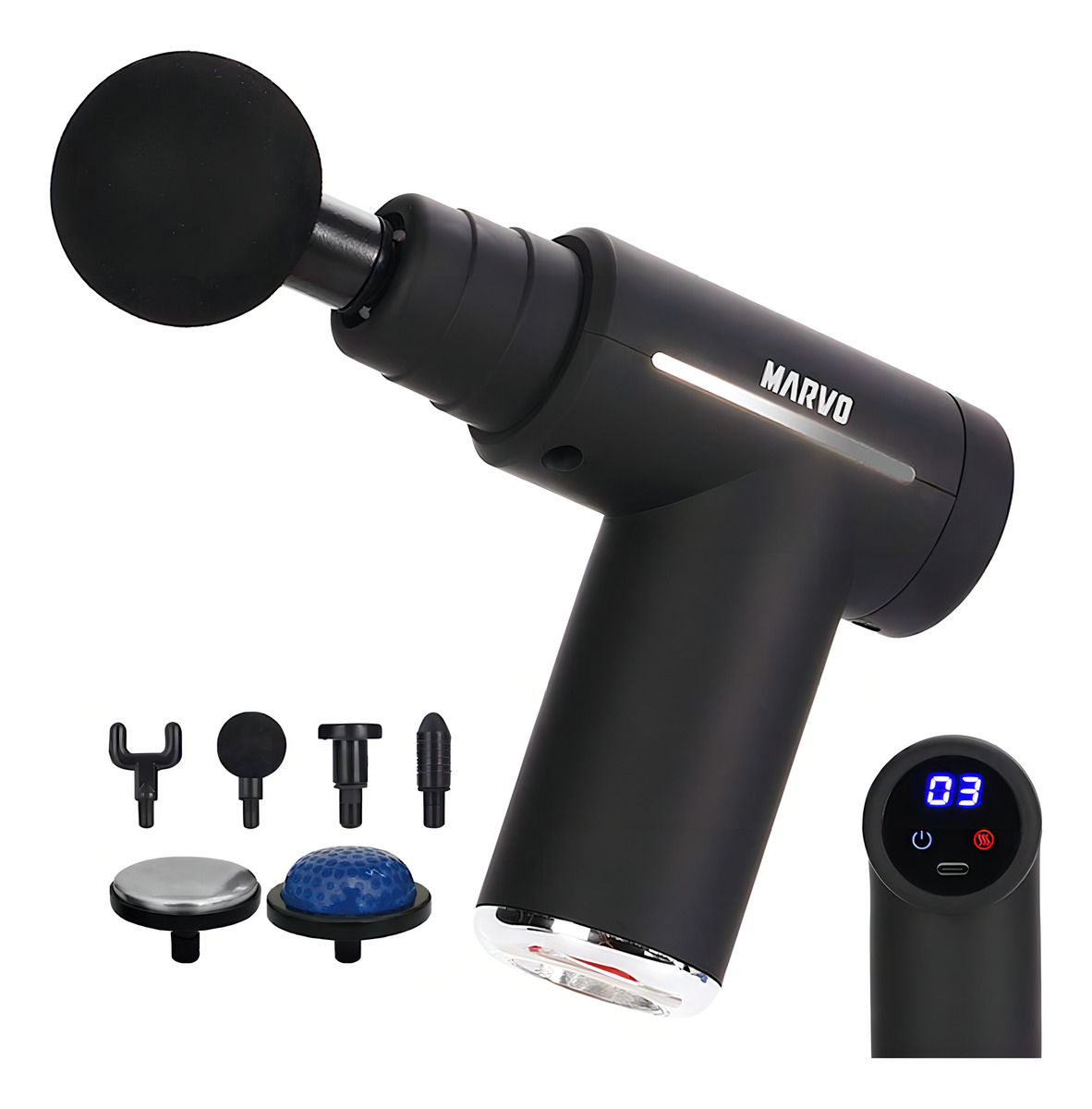 PISTOLA DE MASAJES MARVO PMS-010 INALAMBRICA NEGRO