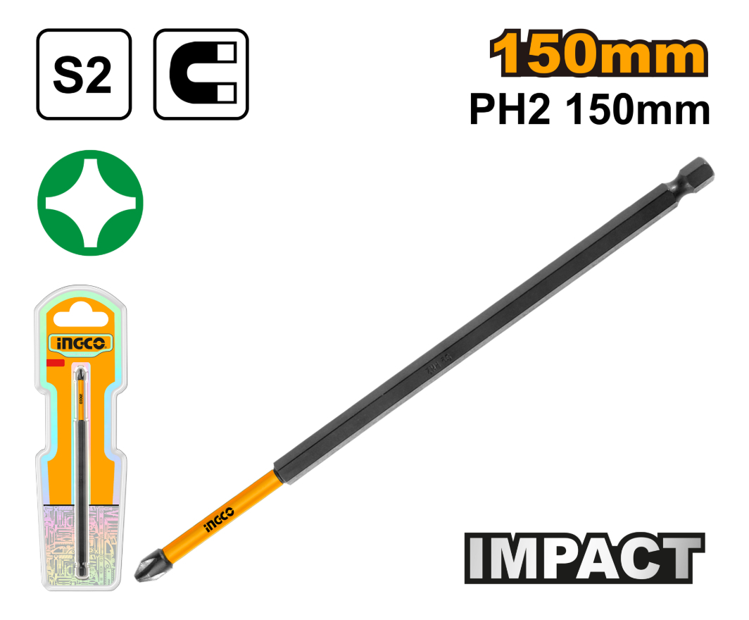 Punta Ph2 Ingco Con Iman Impacto 150mm Fabricada En Acero S2