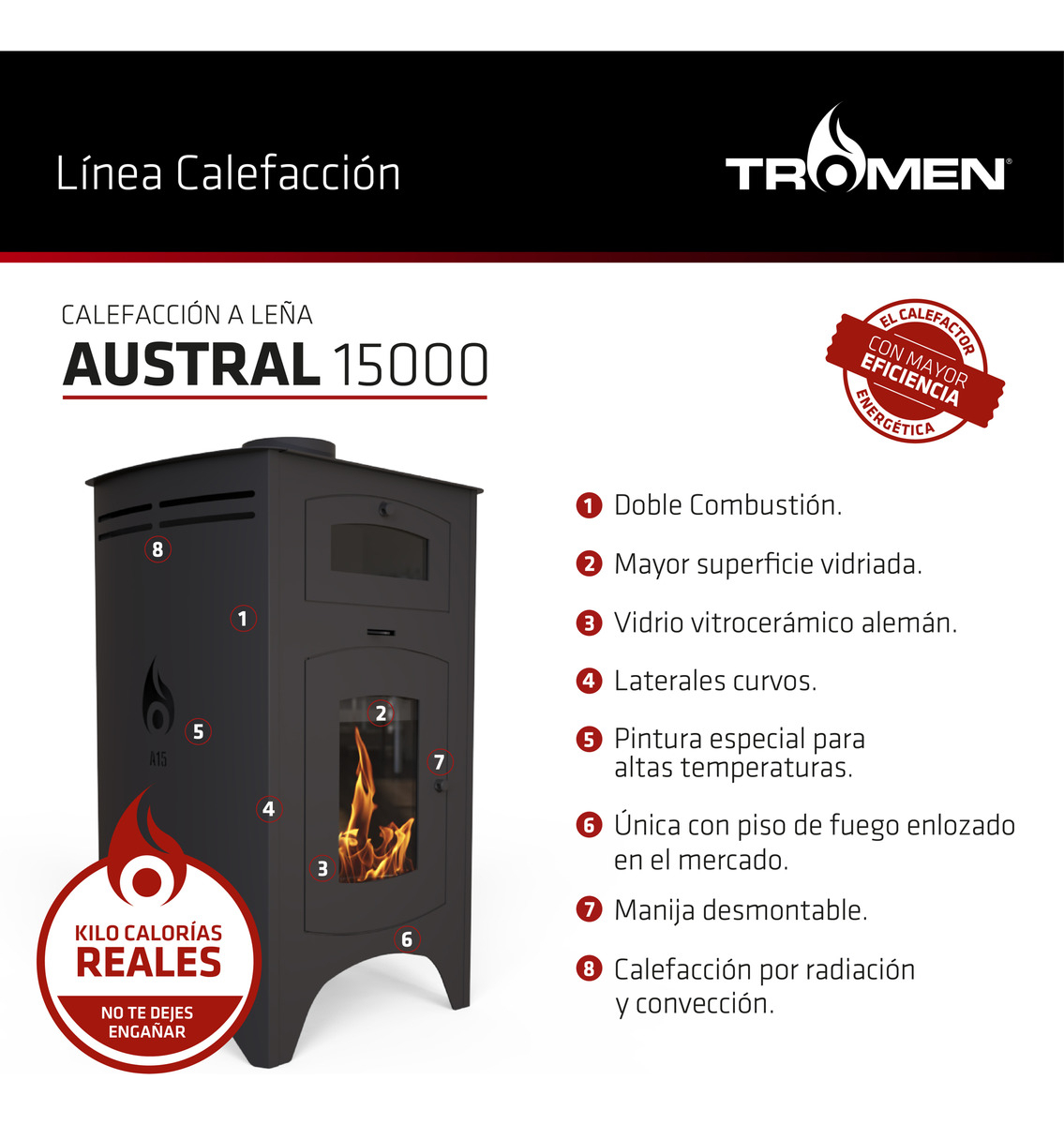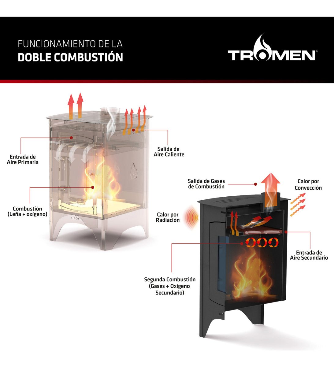 La alta calidad de las salamandras Tromen marcan un diferencial al potenciar el uso racional de energía. La excelencia de sus diseños da cuenta de los materiales con los que son confeccionadas. Su sistema de doble combustión es una de sus características más importantes, que distingue a la marca de aquellas estufas tradicionales.