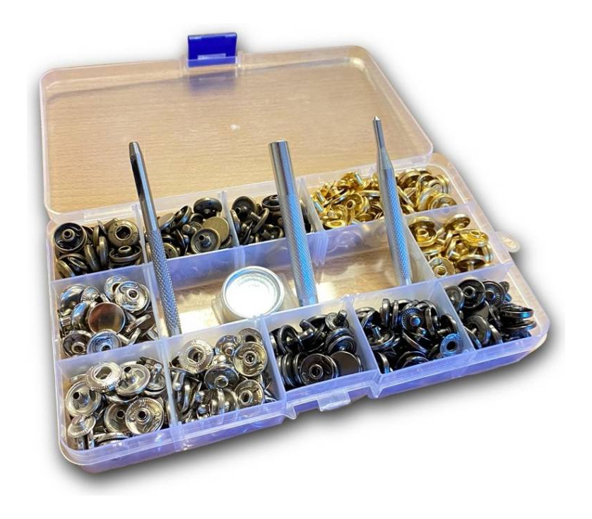 Set de Alicate y 120 Broches a Presion – Completo, práctico y perfecto para manualidades, reparaciones y tela.