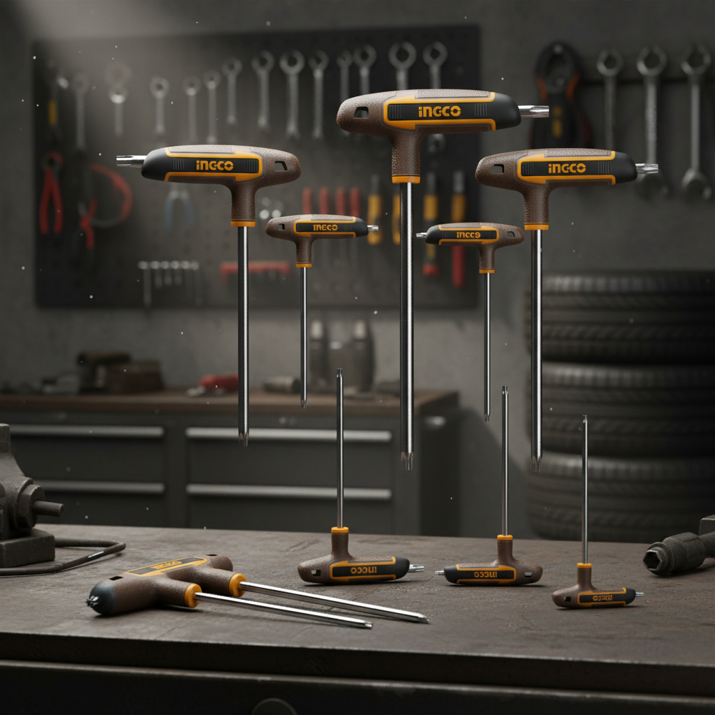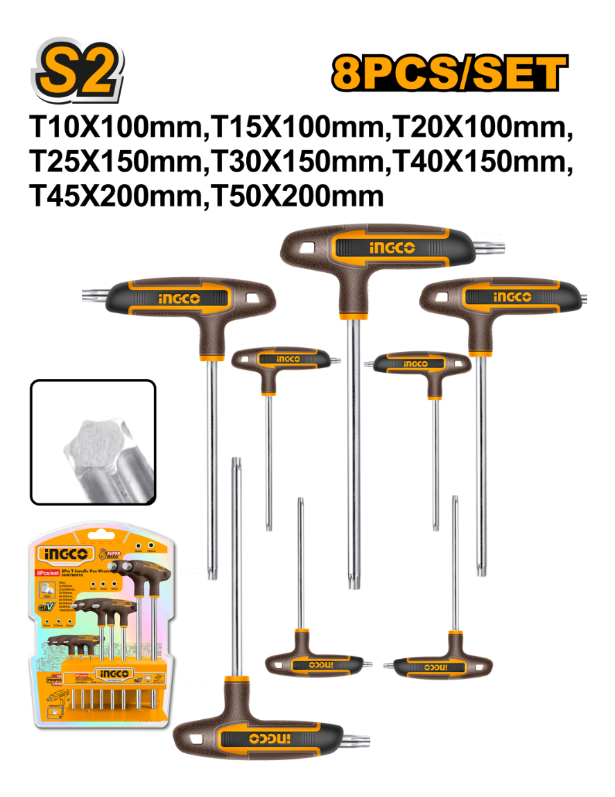SET X8PCS JUEGO LLAVES TORX TIPO T CON MANGO INGCO HHKT80838