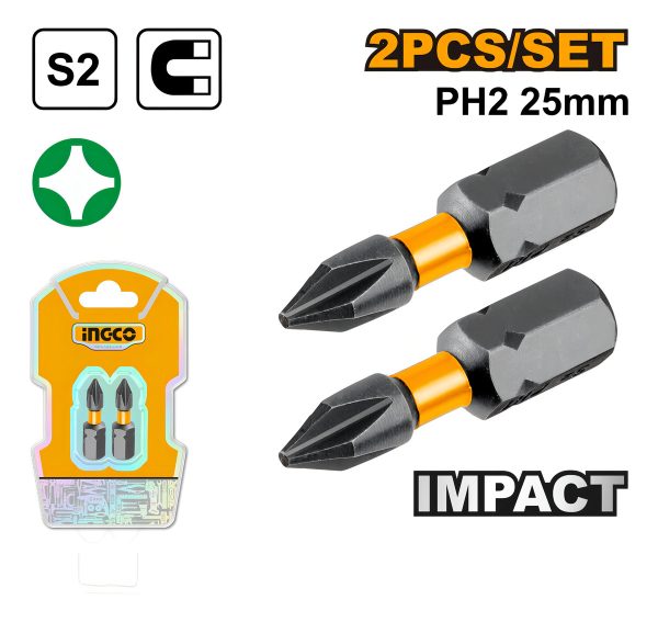 SET X 2 PUNTAS IMPACTO PH2 X 25MM INGCO