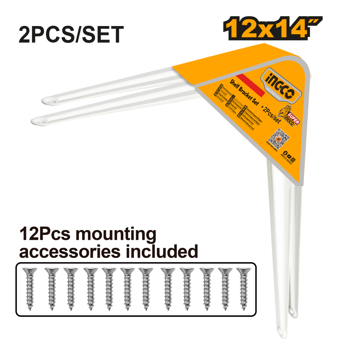 SET X2 MENSULAS P/ESTANTE 12” X 14” (30X35CM) BLANCAS INGCO HSB11214
