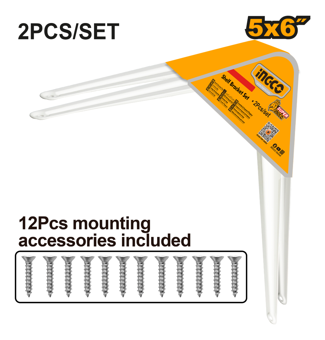 SET X2 MENSULAS P/ESTANTE 5” X 6” (12X15CM) BLANCAS INGCO