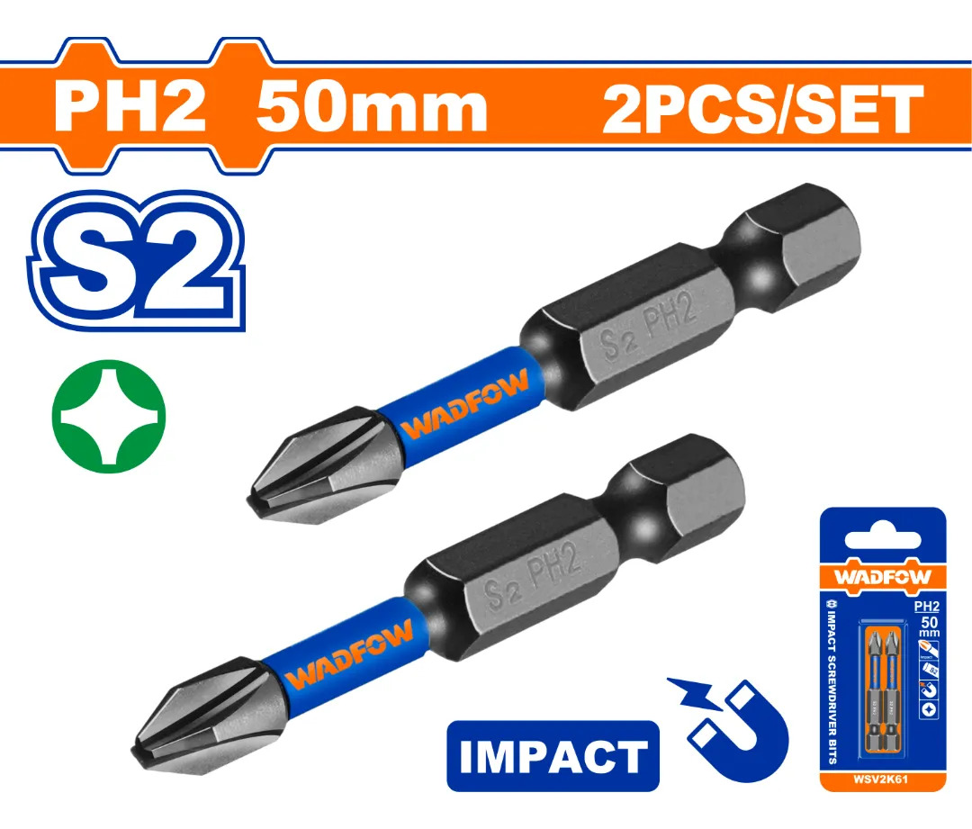SET X2 PUNTAS IMPACTO PH2 50MM ACERO S2 WADFOW WSV2K61