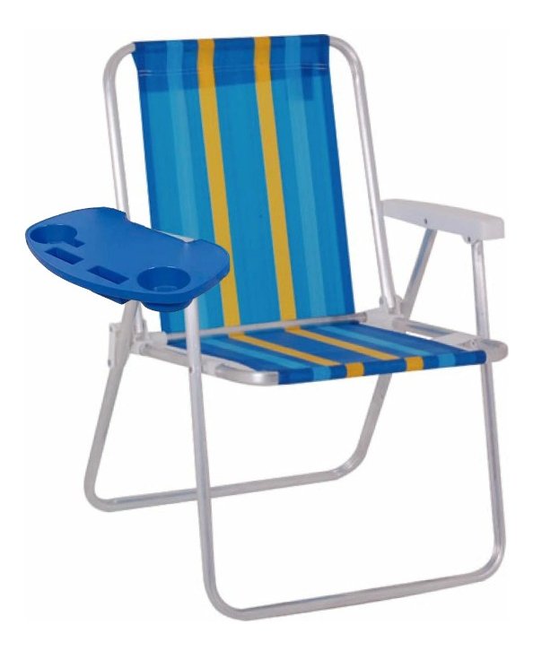 SILLA ALTA ALUMINIO PLEGABLE COLORES SURTIDO A RAYAS + BANDEJA MOR