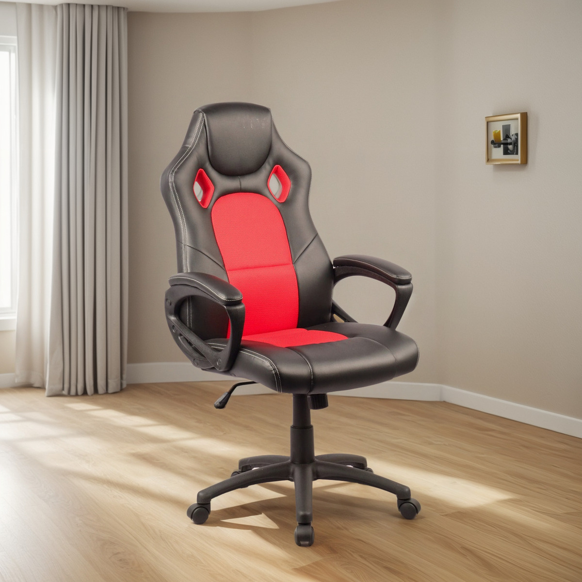 Silla Gamer 8 Giratoria Negro Y Rojo Rueditas
