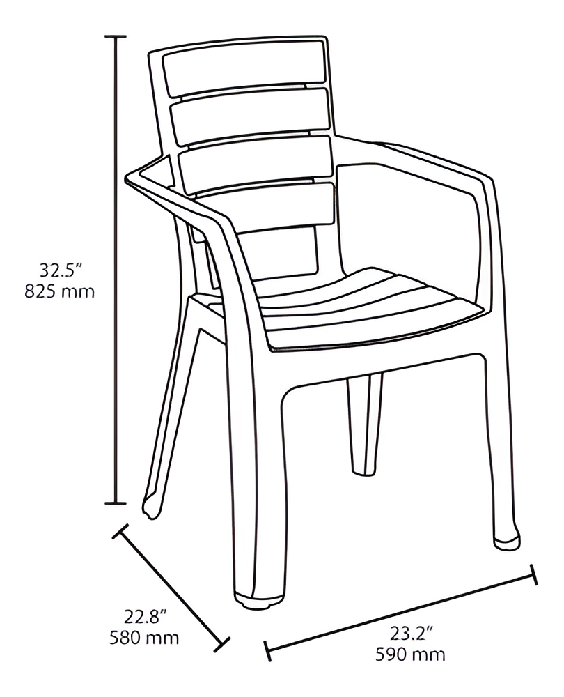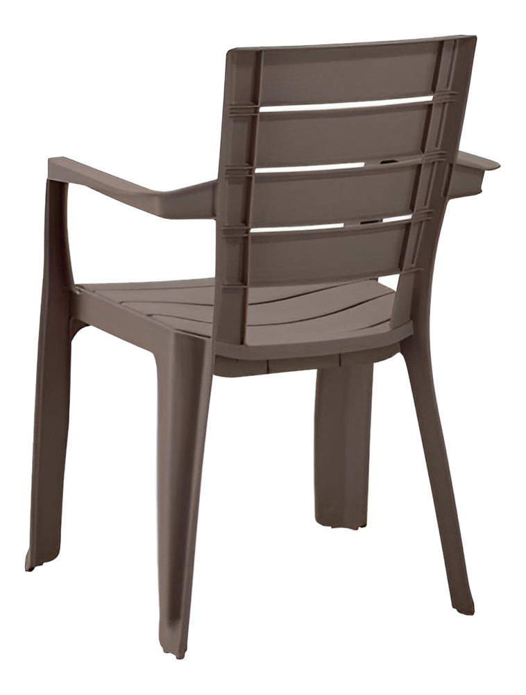 La Silla Barú de apariencia madera es simple y elegante, inspirada en una textura natural que transmite tranquilidad, relajación y armonía, lo que la hace que sea el complemente ideal para el espacio de tu casa, finca u oficina. La silla Barú con brazos está fabricada en resina, un material resistente al agua y que permite una mayor duración del producto, además soporta un peso máximo de hasta 115 kg.