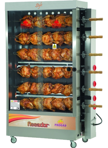 SPIEDO ROTATIVO A GAS 6 ESPADAS (24 POLLOS). CON RUEDAS PROGAS