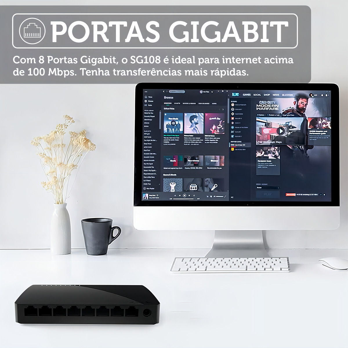 Compartà archivos, impresoras y conexión a Internet con múltiples equipos simultáneamente.Gracias a Tenda SG108, podrás conectar diferentes dispositivos a través de sus puertos y optimizar su rendimiento, velocidad y seguridad.