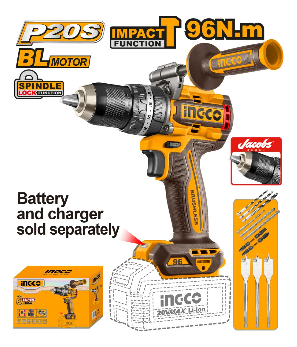 Taladro Atornillador Percutor Bateria 20v S/bat Ingco