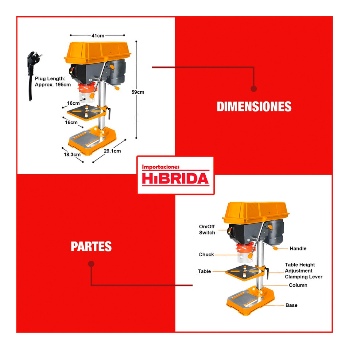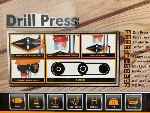 Taladro De Banco 350w -13mm - Ingco - Color Amarillo cantidad