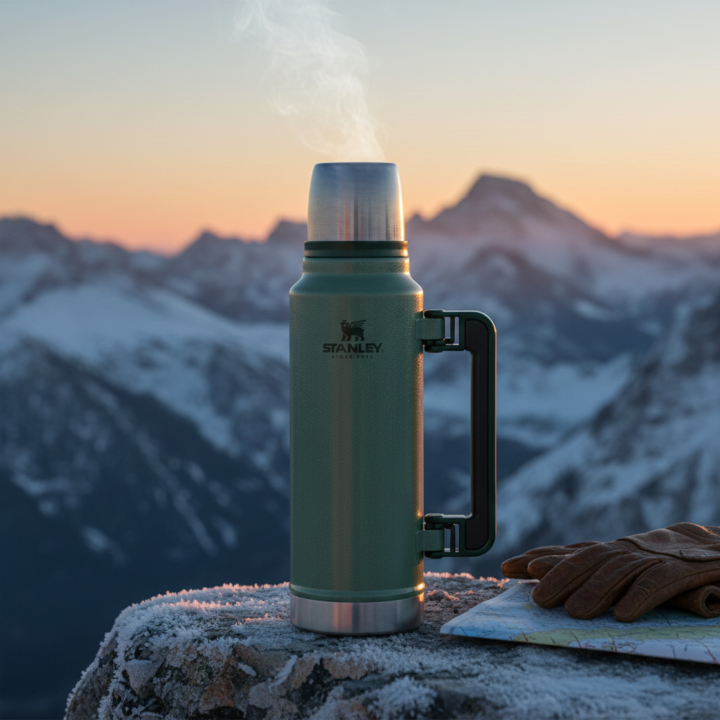 Con el termo Stanley nunca tendrás que preocuparte de que el agua se enfríe o que tu bebida se caliente.