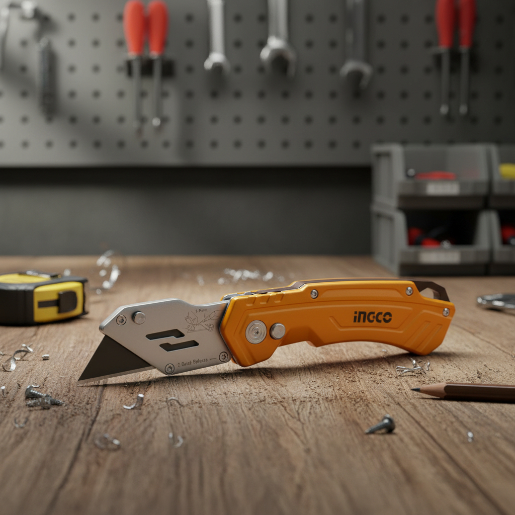 TRINCHETA CUCHILLO PLEGABLE 19X61MM C 6 REPUESTOS SK4 INGCO