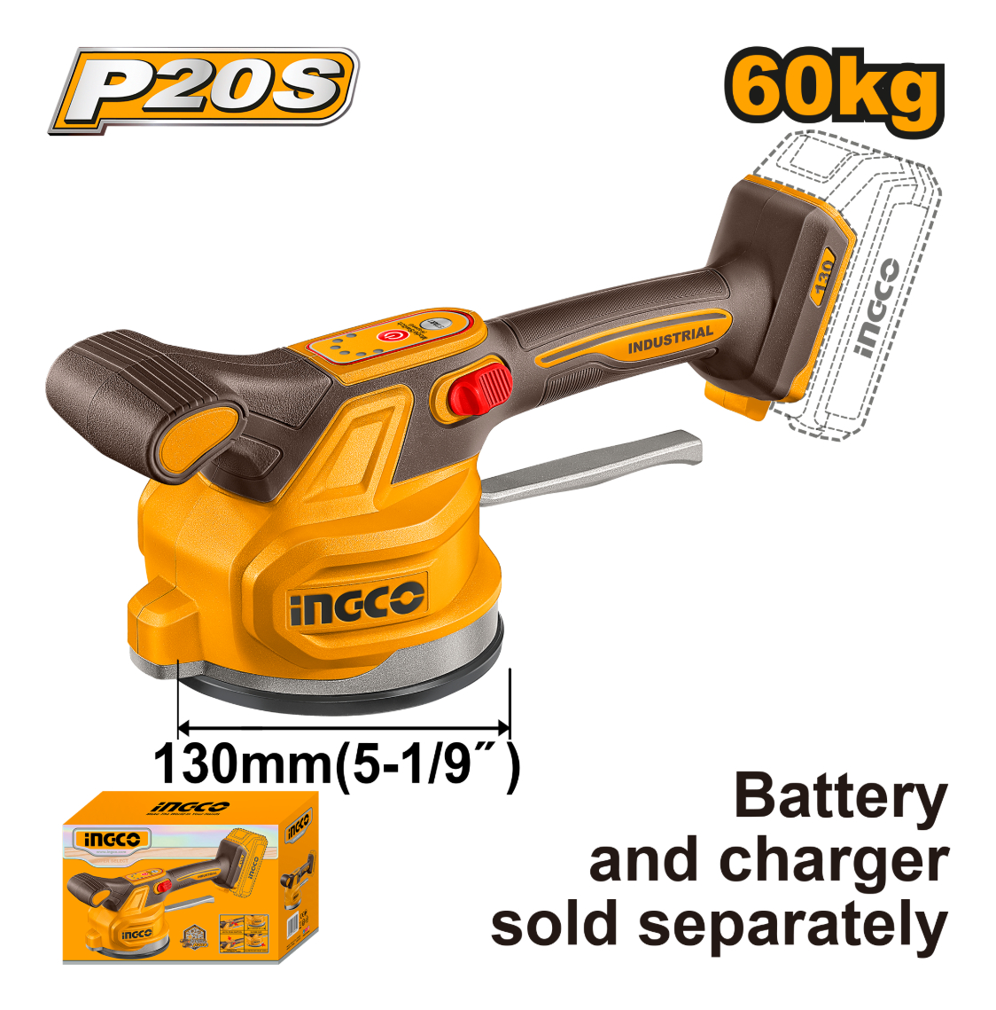 VENTOSA VIBRADORA A BATERIA P20S 130MM SIN BATERIA SIN CARGADOR INGCO