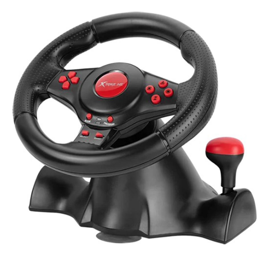 Volante con palanca de cambios y pedaleras, motor de doble vibración incorporado, para brindar una experiencia realista.